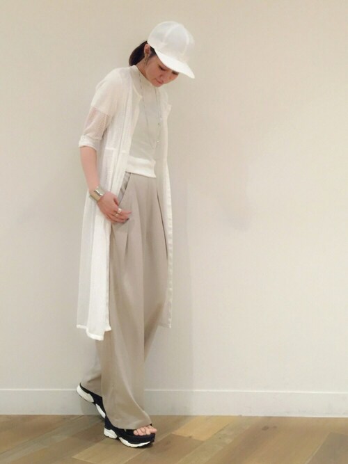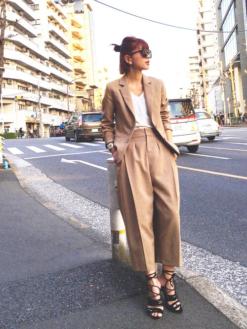 レースアップも秋冬のパンプスから、つま先の空いたサンダルタイプにシフト!!セットアップにあわせればこなれ感でます♡