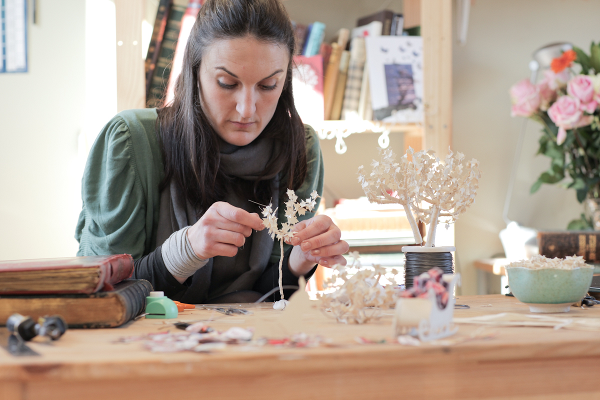 紙で作り上げられた繊細な木に