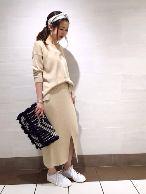 オールホワイトにスリットでトレンドど真ん中コーデ。