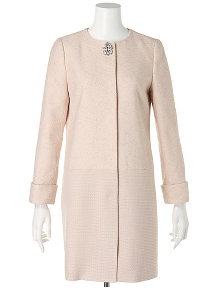 襟ぐりにビジューパールをあしらい、エレガントな仕上がりのワンピース。