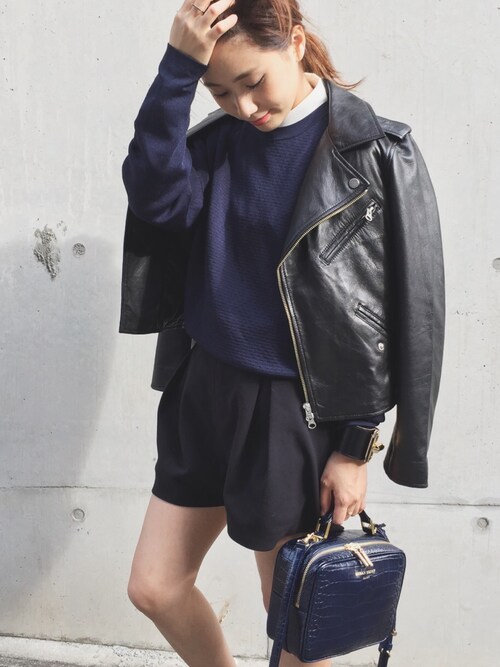 INに白のタートルを入れていつものネイビーニットを新鮮に。