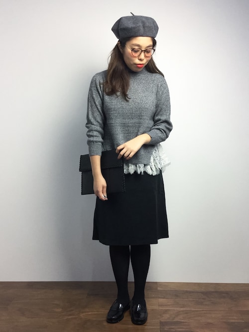 スカートの時もベレーでテイストをあわせれば、即グッドガールに♡色のトーンを合わせれば大人っぽくまとまる!