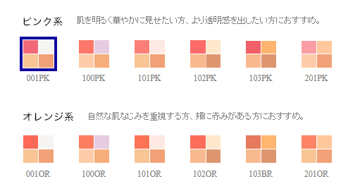 明るさ重視ならピンク、肌馴染みならオレンジを選ぶとい良いそうだ。