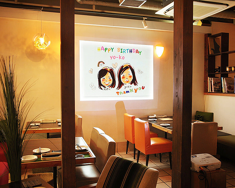 誕生日・記念日には文句付デザートプレートと大型プロジェクターによる文句投影でサプライズ演出!