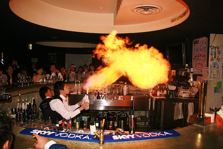 フレアーバーテンディング&ファイヤーショーや花火付カクテルやシャンパンの演出でお誕生日が盛り上がる♪
